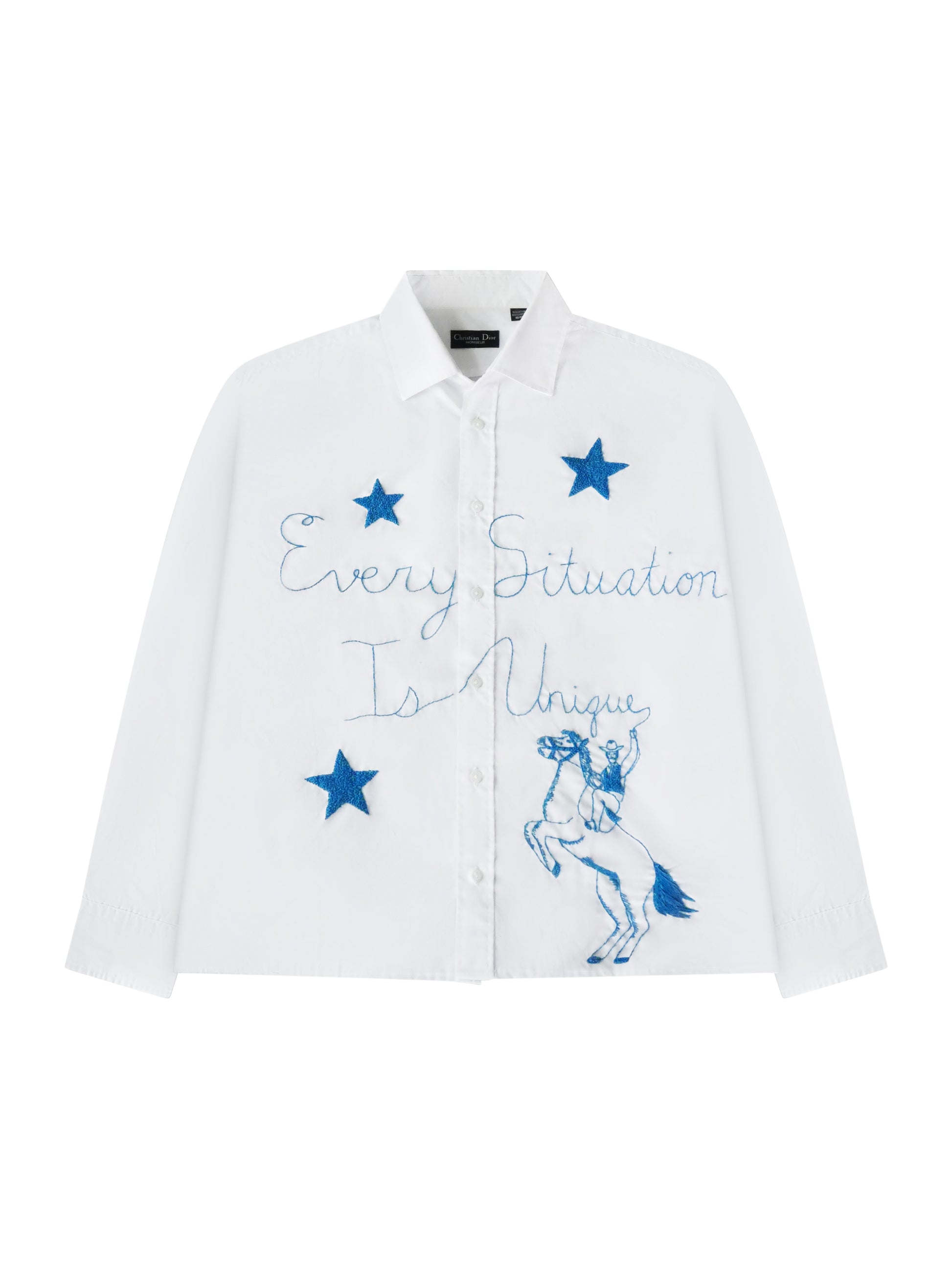 White Christian Dior hand embroidered " Every situation is unique" shirt